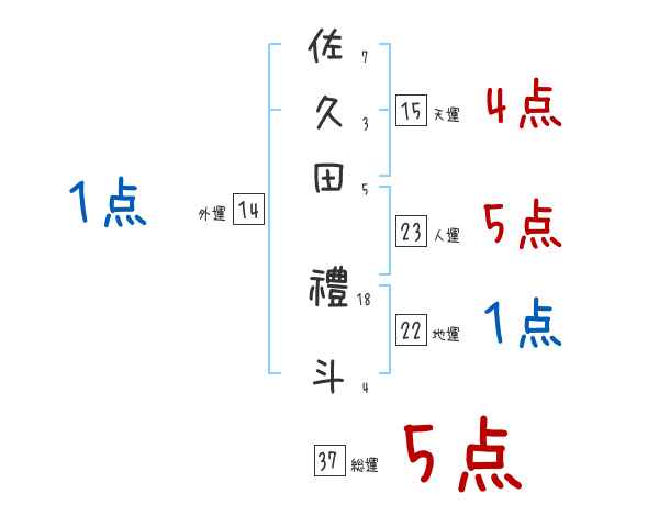 天運![]() | 佐久田禮斗さんの天運は15画の4つ星!人徳があり出世する。順調に物事を進め円満な人生。 家系が持つ宿命的な運勢を表します。祖先から受け継いだ苗字ですので自分の力が及びません。家柄を象徴します。 |