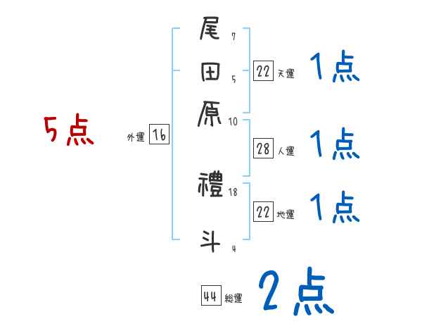外運![]() | 尾田原禮斗さんの外運は16画の5つ星!人望が厚く大きく発展する。逆転成功が見える。 生活面を象徴する運勢です。外部から受ける影響力を表し、結婚運、家庭運や職場、環境への順応性を表します。 |