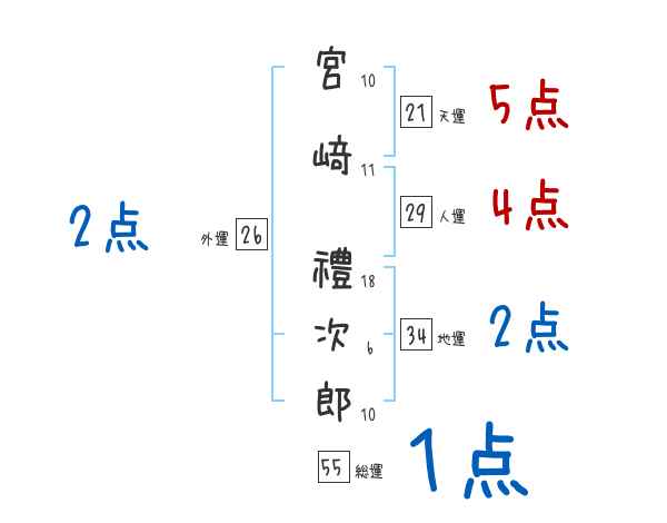 宮﨑禮次郎さんの画数の鑑定結果
