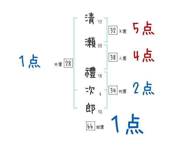 天運![]() | 清瀬禮次郎さんの天運は32画の5つ星!柔軟性があり成功する。チャンスが多く金運が良い。 家系が持つ宿命的な運勢を表します。祖先から受け継いだ苗字ですので自分の力が及びません。家柄を象徴します。 |