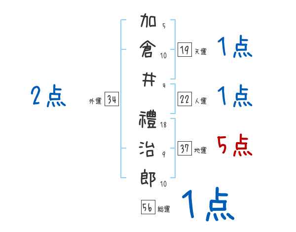 地運![]() | 加倉井禮治郎さんの地運は37画の5つ星!努力家で順応性に優れる。現実的な考え方ができ忠実に物事をこなす。 個性を表す基礎的な運勢です。性格形成や対人関係、行動力など家庭環境に影響されます。主に誕生してから20歳くらいまでの若年期の運勢を表します。 |