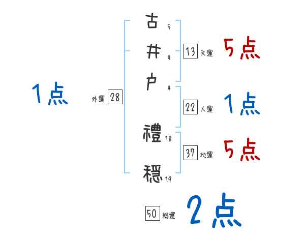 古井戸禮穏さんの画数の鑑定結果