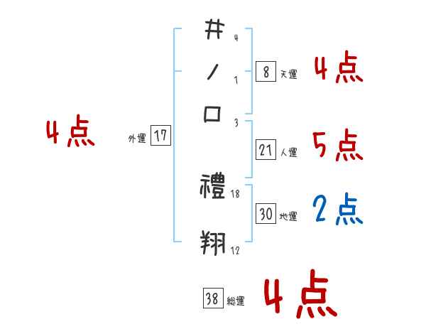外運![]() | 井ノ口禮翔さんの外運は17画の4つ星!積極的な行動力。地位を気づき財産を手に入れる。純粋な心と直感力。 生活面を象徴する運勢です。外部から受ける影響力を表し、結婚運、家庭運や職場、環境への順応性を表します。 |
