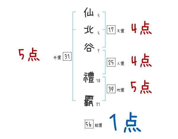 地運![]() | 仙北谷禮覇さんの地運は39画の5つ星!社交性に優れ人望が厚い。人の上に立ち成功する。 個性を表す基礎的な運勢です。性格形成や対人関係、行動力など家庭環境に影響されます。主に誕生してから20歳くらいまでの若年期の運勢を表します。 |