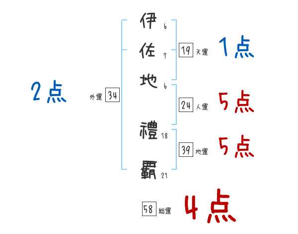 総運![]() | 伊佐地禮覇さんの総運は58画の4つ星!安定した生活。大器晩成タイプ。 あなたの人生を表す1番重要な運勢です。生涯を通じて影響する総合運となり、主に50歳以降の晩年期に影響を及ぼします。 |