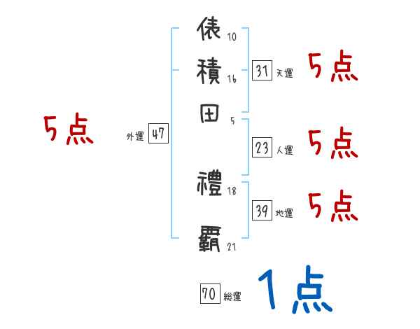外運![]() | 俵積田禮覇さんの外運は47画の5つ星!実力が開花し発展する円満な人生。財に恵まれる。 生活面を象徴する運勢です。外部から受ける影響力を表し、結婚運、家庭運や職場、環境への順応性を表します。 |