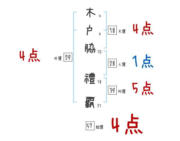 総運![]() | 木戸脇禮覇さんの総運は57画の4つ星!向上心があり人望がある。地位を得る。 あなたの人生を表す1番重要な運勢です。生涯を通じて影響する総合運となり、主に50歳以降の晩年期に影響を及ぼします。 |
