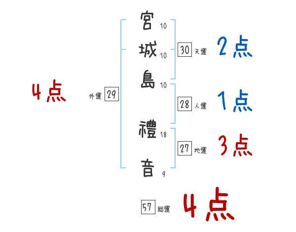 家系が持つ宿命的な運勢を表します。祖先から受け継いだ苗字ですので自分の力が及びません。家柄を象徴します。