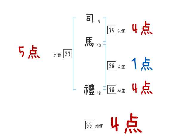 司馬禮さんの画数の鑑定結果