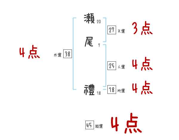 瀬尾禮さんの画数の鑑定結果