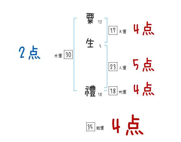 粟生禮さんの画数の鑑定結果