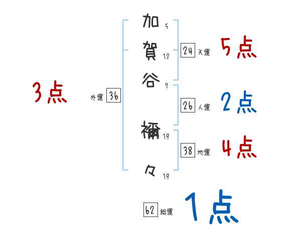 加賀谷禰々さんの画数の鑑定結果