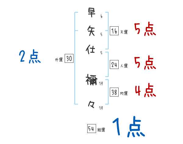 天運![]() | 早矢仕禰々さんの天運は16画の5つ星!人望が厚く大きく発展する。逆転成功が見える。 家系が持つ宿命的な運勢を表します。祖先から受け継いだ苗字ですので自分の力が及びません。家柄を象徴します。 |