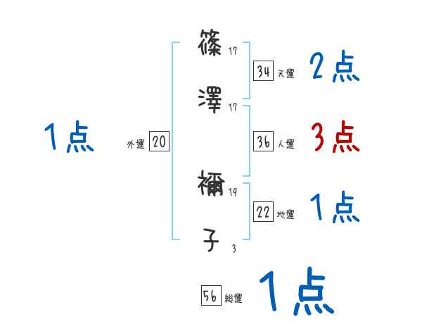 総運![]() | 篠澤禰子さんの総運は56画の1つ星!消極的で無気力になりがち。誠実な気持ちが必要でしょう。 あなたの人生を表す1番重要な運勢です。生涯を通じて影響する総合運となり、主に50歳以降の晩年期に影響を及ぼします。 |