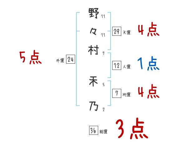 野々村禾乃さんの画数の鑑定結果