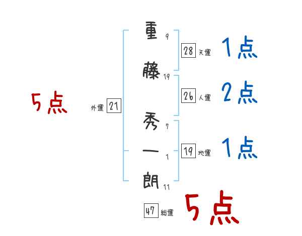 外運![]() | 重藤秀一朗さんの外運は21画の5つ星!統率力がある。独立し成功する。名誉を手に入れる。 生活面を象徴する運勢です。外部から受ける影響力を表し、結婚運、家庭運や職場、環境への順応性を表します。 |