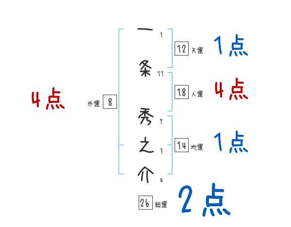 外運![]() | 一条秀之介さんの外運は8画の4つ星!勤勉家。根気強く努力し成功する。忍耐力がある。 生活面を象徴する運勢です。外部から受ける影響力を表し、結婚運、家庭運や職場、環境への順応性を表します。 |