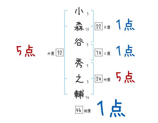 小森谷秀之輔さんの画数の鑑定結果