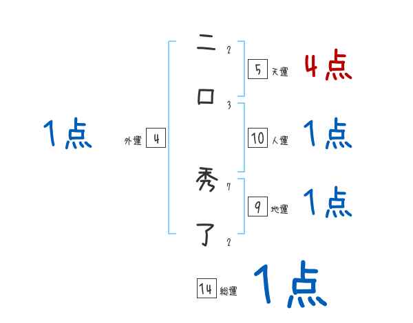 二口秀了さんの画数の鑑定結果