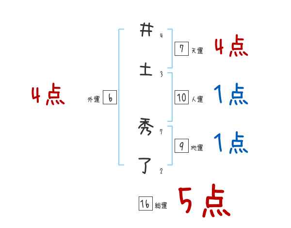 総運![]() | 井土秀了さんの総運は16画の5つ星!人望が厚く大きく発展する。逆転成功が見える。 あなたの人生を表す1番重要な運勢です。生涯を通じて影響する総合運となり、主に50歳以降の晩年期に影響を及ぼします。 |