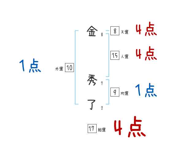 金秀了さんの総運は17画の4つ星