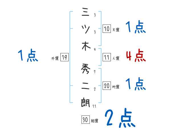 三ツ木秀二朗さんの画数の鑑定結果