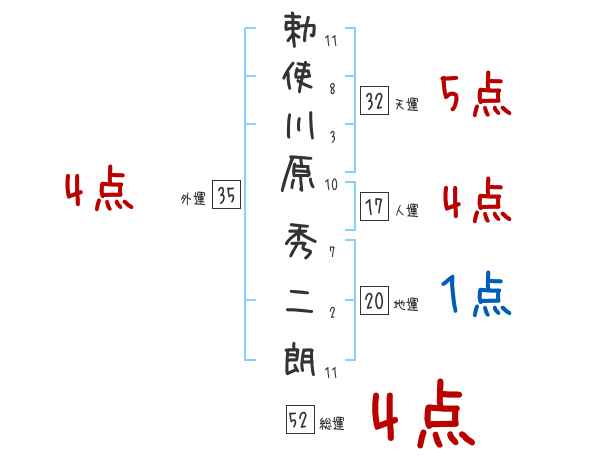 勅使川原秀二朗さんの画数の鑑定結果