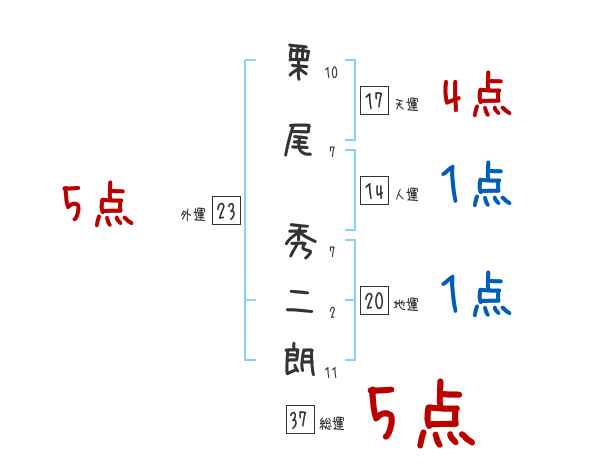 栗尾秀二朗さんの画数の鑑定結果
