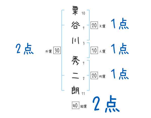 栗谷川秀二朗さんの画数の鑑定結果