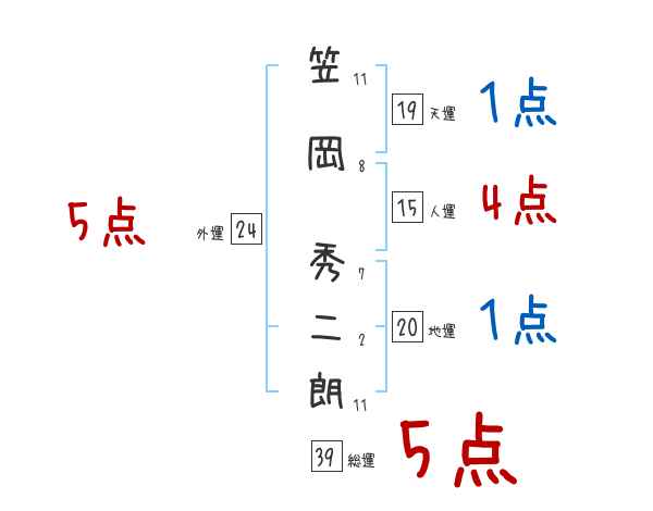笠岡秀二朗さんの画数の鑑定結果