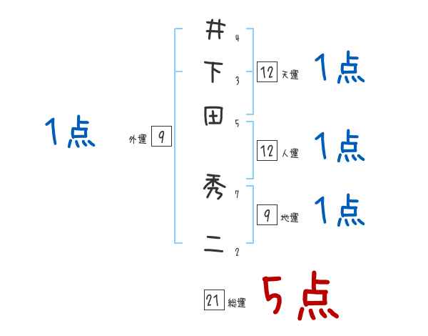 井下田秀二さんの画数の鑑定結果