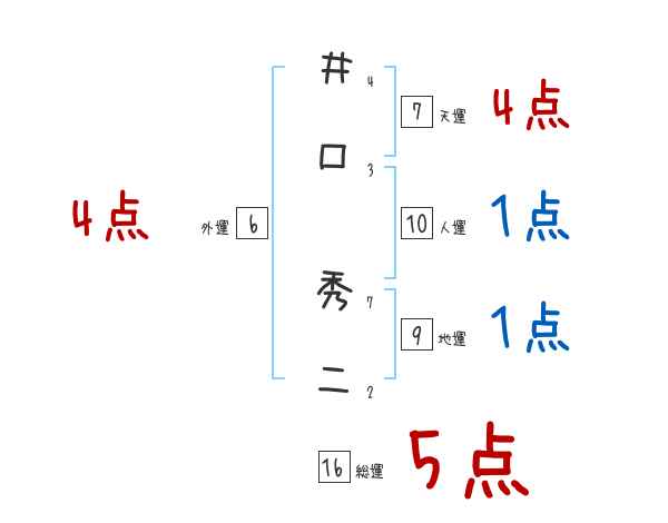 井口秀二さんの画数の鑑定結果