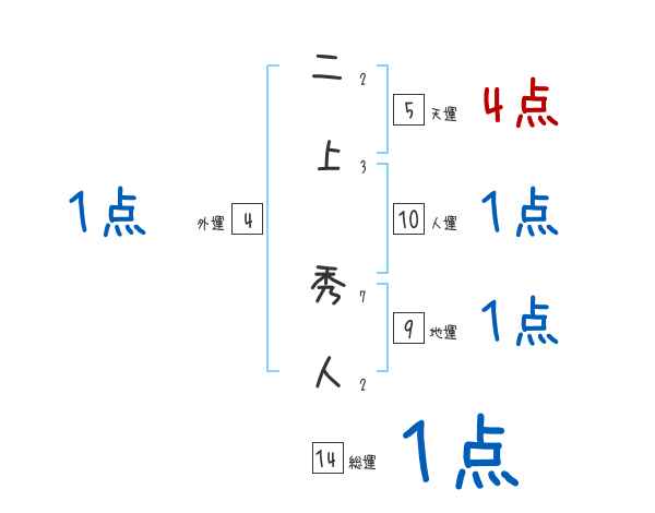 二上秀人さんの画数の鑑定結果
