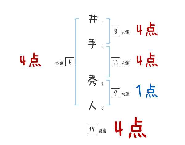 総運![]() | 井手秀人さんの総運は17画の4つ星!積極的な行動力。地位を気づき財産を手に入れる。純粋な心と直感力。 あなたの人生を表す1番重要な運勢です。生涯を通じて影響する総合運となり、主に50歳以降の晩年期に影響を及ぼします。 |
