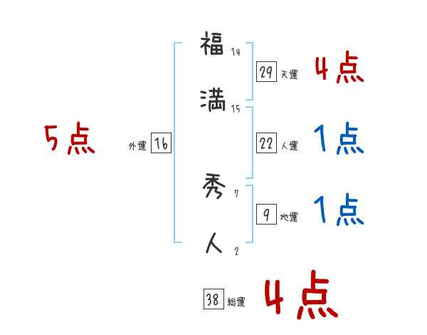 福満秀人さんの画数の鑑定結果