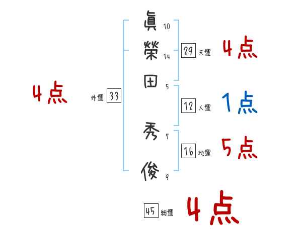眞榮田秀俊さんの画数の鑑定結果