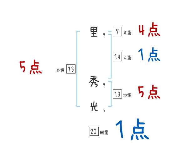 里秀光さんの画数の鑑定結果