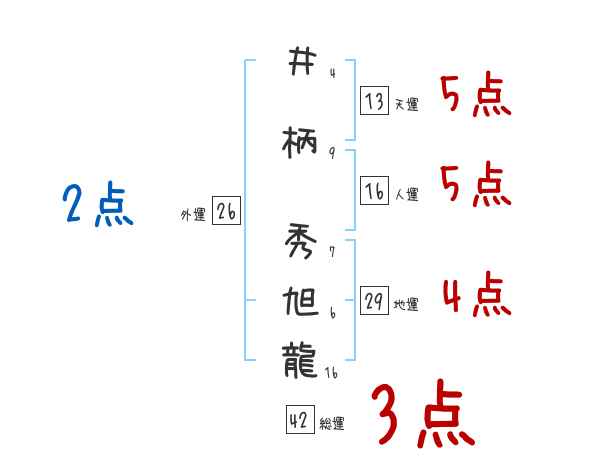 井柄秀旭龍さんの画数の鑑定結果