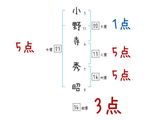 小野寺秀昭さんの画数の鑑定結果