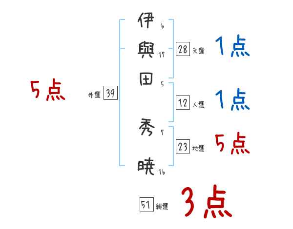 伊與田秀暁さんの画数の鑑定結果