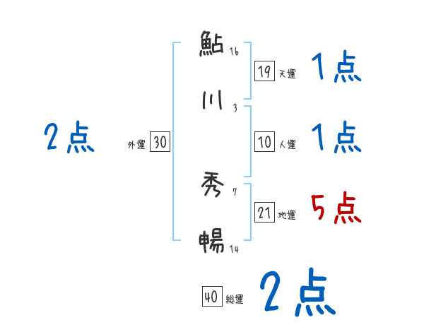 外運![]() | 鮎川秀暢さんの外運は30画の2つ星!浮き沈みの激しさに注意しましょう。 生活面を象徴する運勢です。外部から受ける影響力を表し、結婚運、家庭運や職場、環境への順応性を表します。 |