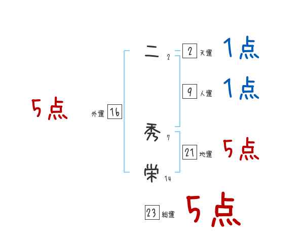 二秀栄さんの画数の鑑定結果
