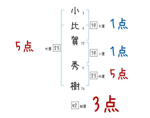 外運![]() | 小比賀秀樹さんの外運は23画の5つ星!想像力に優れ活力がある。一代で成功し名誉を手に入れる。 生活面を象徴する運勢です。外部から受ける影響力を表し、結婚運、家庭運や職場、環境への順応性を表します。 |