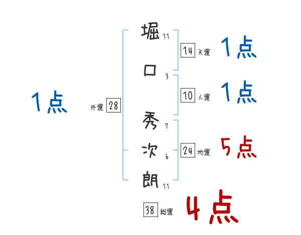 外運![]() | 堀口秀次朗さんの外運は28画の1つ星!家庭環境に注意。スポーツで活躍できる能力があるかも。 生活面を象徴する運勢です。外部から受ける影響力を表し、結婚運、家庭運や職場、環境への順応性を表します。 |