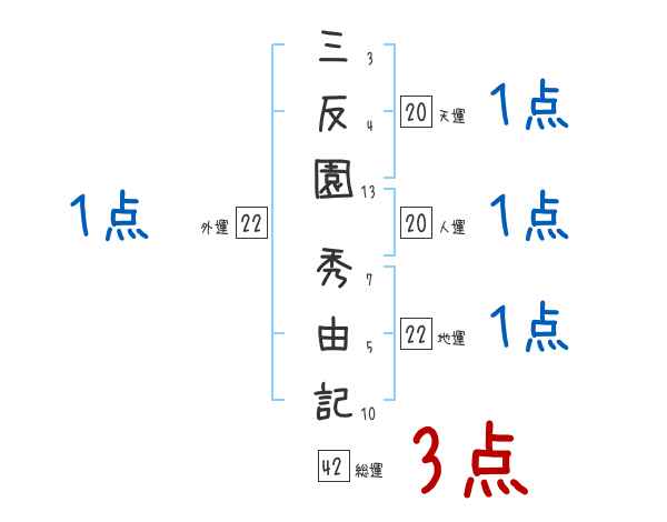 総運![]() | 三反園秀由記さんの総運は42画の3つ星!病気に注意。多芸であるが消極的でおとなしい。 あなたの人生を表す1番重要な運勢です。生涯を通じて影響する総合運となり、主に50歳以降の晩年期に影響を及ぼします。 |