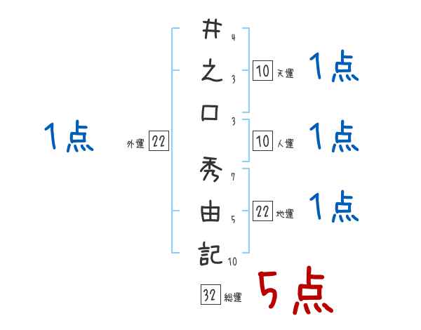 井之口秀由記さんの画数の鑑定結果