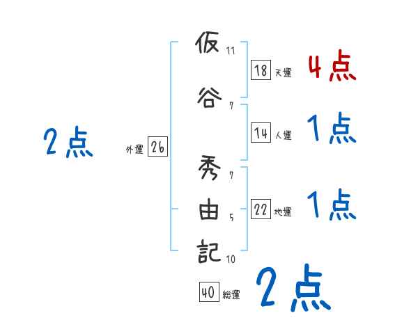 外運![]() | 仮谷秀由記さんの外運は26画の2つ星!波瀾万丈かも。信頼できる人を大事にしましょう。 生活面を象徴する運勢です。外部から受ける影響力を表し、結婚運、家庭運や職場、環境への順応性を表します。 |