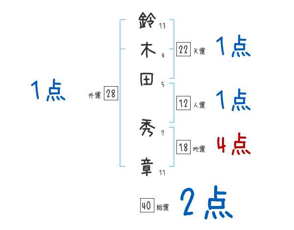 鈴木田秀章さんの画数の鑑定結果