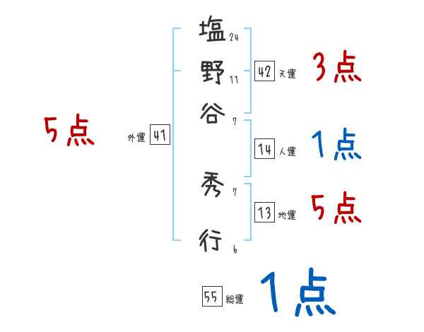 塩野谷秀行さんの画数の鑑定結果
