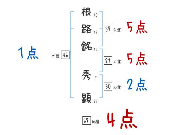 根路銘秀顕さんの総運は67画の4つ星